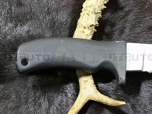 它的手柄符合人体工程学设计,把握极其舒适称手。食指凹槽让使用者即使看不见也能凭手感找到握刃的位置。材料使用特殊的玻璃纤维与环氧基树脂合成来做刃的握柄。此种特殊材质每一平方英寸可承受79000磅的压力(约3600公斤),可以轻易地承受0.45口径子弹的冲击。因此Mad Dog刃的握柄就算很严苛的使用也不会造成损害。此种握柄材质同时也提供了极好的绝缘,每0.001吋可承受1000伏特的电压,因而可以保护持刃者不会在使用刃具时遭受电击。另外这种握柄材质也几乎不受化学物质的渗透及侵蚀。