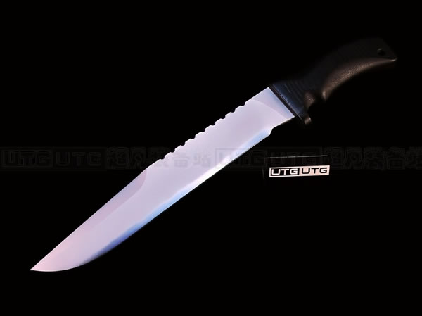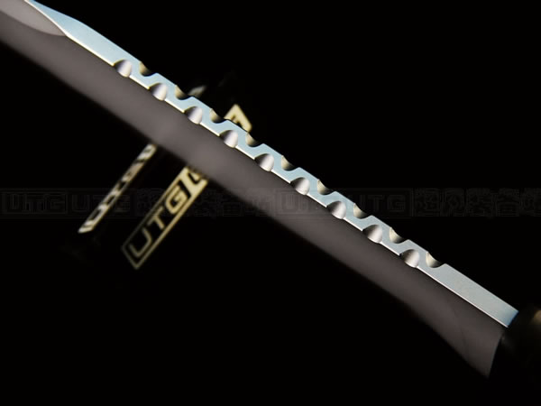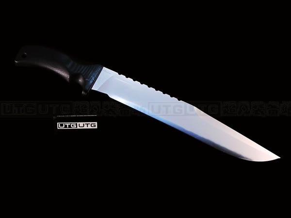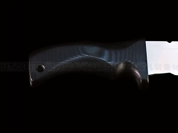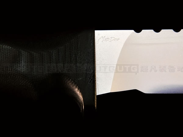 MAD DOG TIGER 特级疯狗战术刃是凯文先生2012年最新力作,刃具使用 Starrett 496-01 高碳工具钢,经过非常专业的淬水-挤压-回火热处理流程,最难的是热处理,越长的尺寸越难做出良好的淬火。大尺寸的刃具在做热处理时经常出现次品和残品,需要刃匠有极高的经验。使每片刃刃达到理想的层变硬度:刃锋硬度为HRC64-66,具有非常出色的刃锋保持性;而刃尖硬度为HRC59-61,刃脊和柄芯的硬度则在HRC50-55,保持良好的弹性,防止刃尖折断,并且增强了刃刃的韧性。除此之外,刃刃经过电镀处理,加上厚厚一层坚硬的铬合金,具有很强的抗腐蚀和磨损能力。