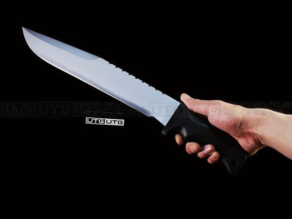 它的手柄符合人体工程学设计,把握极其舒适称手。食指凹槽让使用者即使看不见也能凭手感找到握刃的位置。材料使用特殊的玻璃纤维与环氧基树脂合成来做刃的握柄。此种特殊材质每一平方英寸可承受79000磅的压力(约3600公斤),可以轻易地承受0.45口径子弹的冲击。因此Mad Dog刃的握柄就算很严苛的使用也不会造成损害。此种握柄材质同时也提供了极好的绝缘,每0.001吋可承受1000伏特的电压,因而可以保护持刃者不会在使用刃具时遭受电击。另外这种握柄材质也几乎不受化学物质的渗透及侵蚀。