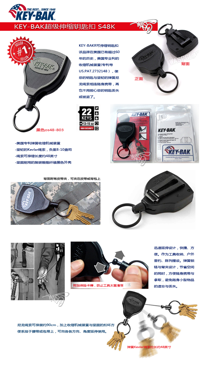 商品属性:美国奇贝 KEY BAK-SUPER S48K 超级钥匙扣 钢背夹,美国奇贝,KEY BAK,SUPER S48K,超级钥匙扣,钢背夹,伸缩钥匙扣,KEY BAK S48K
