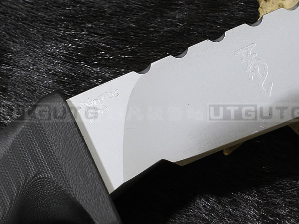 所有Mad Dog刃子及刃鞘系统都是以手工制作而成。Mad Dog钢材刃都是使用一种叫Starrett 496-O1的高碳工具钢,最独特的是它的热处理方式,先经过硬化(Hardened)然后再选择性回火(selectively tempered)而成。每个部分的热处理都不一样,刃锋部分的硬度是63-67HRC,在刃背部分则是50-55HRC,刃尖部分是59-61HRC,手柄部分48-52HRC,整刃分为4个部分处理,这种科学的方法成为分段热处理。这种方法可以使刃具既有很高的硬度又有较强的韧性,劈砍,穿刺,切割,撬砸等,能适应各种高强度工作。