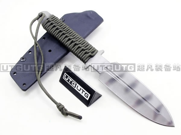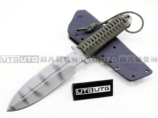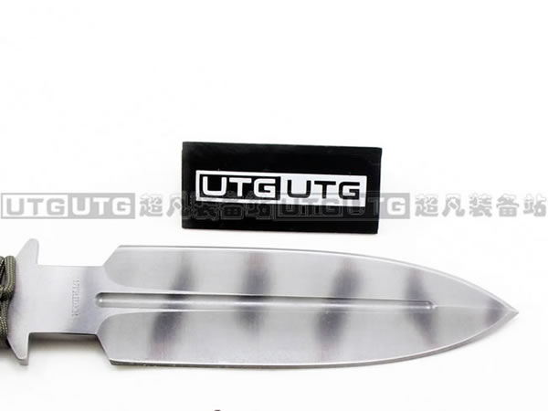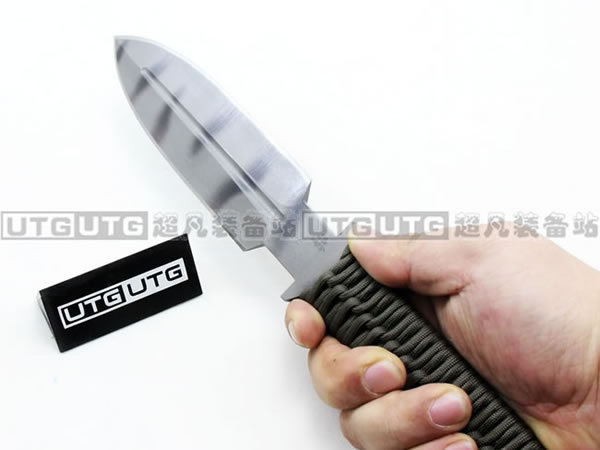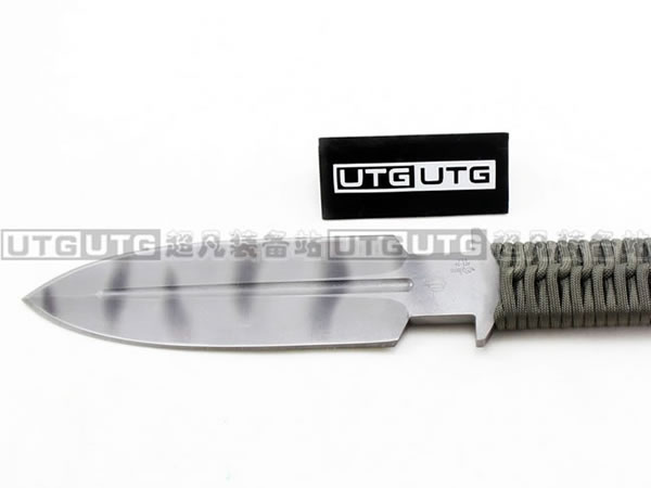 这款挺进者JW直刃是挺进者公司早期的作品,由热处理大师BOS制作,这款刃的钢材是ATS-34不锈钢,由于这款钢材价格昂贵,现在作为制刃钢材已经停产。早期的挺进者虎纹作品只有ATS-34和BG42能够做出发红的虎纹涂层,现在存世的挺进者作品多为S30V作为基础钢材,BG42钢材的作品已经非常少见,ATS-34钢材的作品就更为罕见了,并且这款老版本的BOSS标带血槽虎纹战术直刃存世量不到50把,其珍贵程度不言而喻。