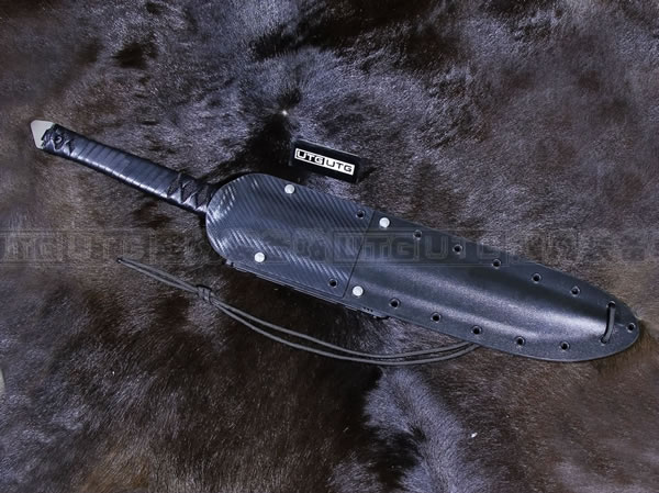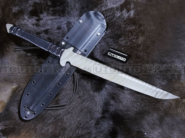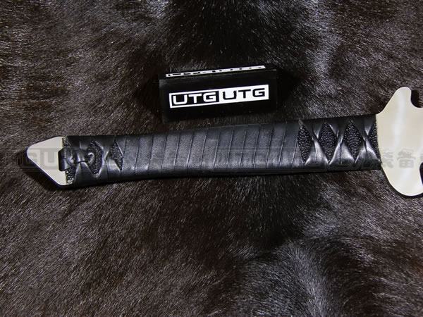 刃具的Tsukamaki(柄卷)使用日式传统的缠绕手法,一体式手柄钢材外部使用赤魟皮进行裹附,这种皮革表面呈颗粒状,具有极佳的握感和防滑性能,以及用皮革代替编织绳进行缠绕。出色的手感和把握力让刃具在双手持握时感觉更佳更具威力。刃柄末端的金属圆头可发挥出色的击锤作用,尤其在狭窄区域或近身时进行非致命制服动作。
