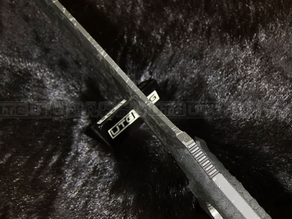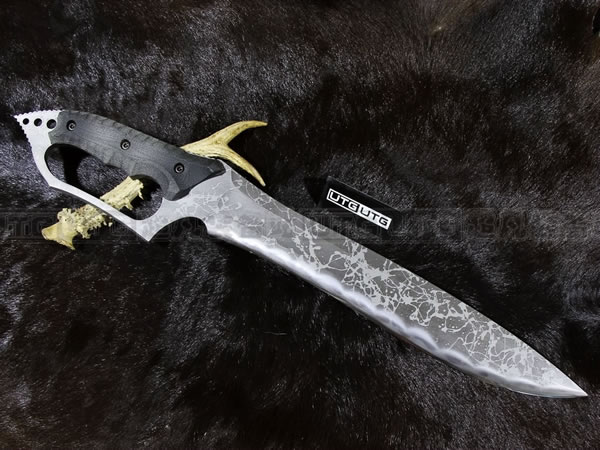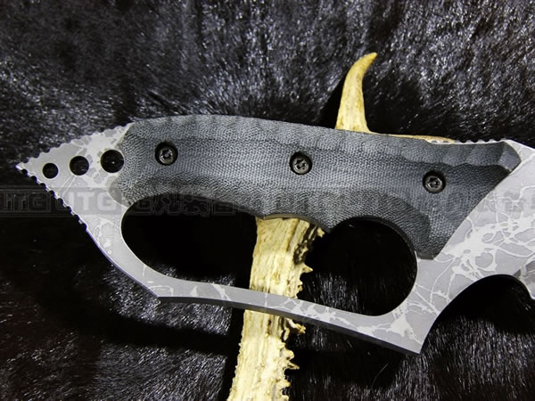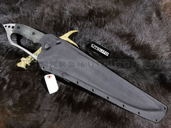 2013年末松田菊男亲自手工打造的一款重型战术直刃-KIKU Gladiator(剑斗士),一度我们认为这款刃具是“狼”或“鹫”,后来经过对比发现并不是,询问后才知道这款刃具是松田先生为了年末的刃展特意打造的。刃具原型采用了“鹫”型战术刃。一体钢护手在制作过程中是非常复杂的,成品率极低,制作过程中稍有差错就会全功尽弃。