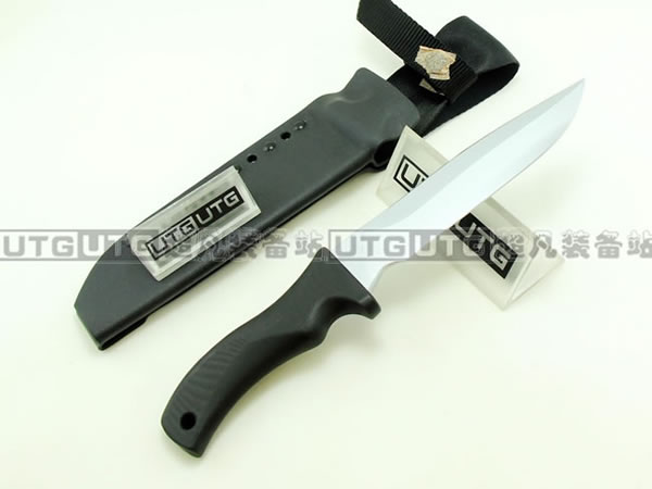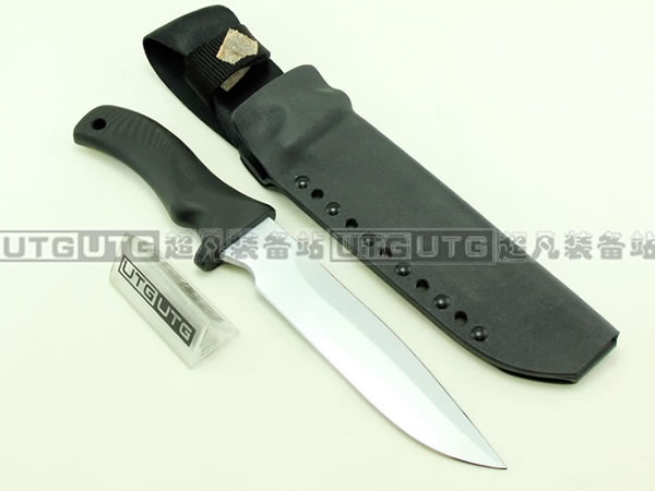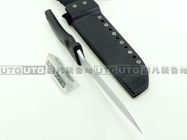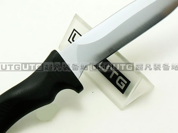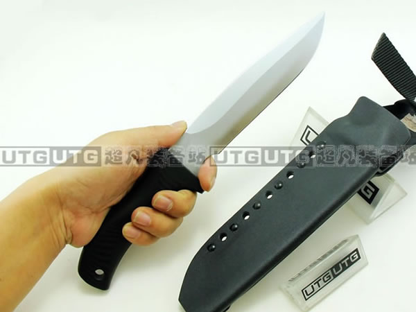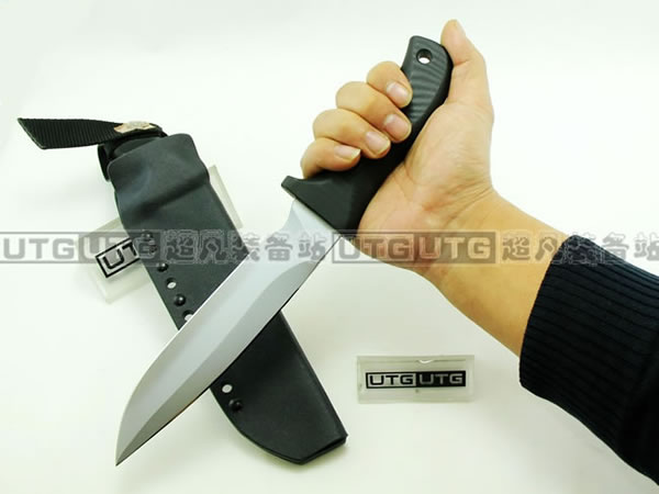 它的手柄符合人体工程学设计,把握极其舒适称手。食指凹槽让使用者即使看不见也能凭手感找到握刃的位置。材料使用特殊的玻璃纤维与环氧基树脂合成来做刃的握柄。此种特殊材质每一平方英寸可承受79000磅的压力(约3600公斤),可以轻易地承受0.45口径子弹的冲击。因此Mad Dog刃的握柄就算很严苛的使用也不会造成损害。此种握柄材质同时也提供了极好的绝缘,每0.001吋可承受1000伏特的电压,因而可以保护持刃者不会在使用刃具时遭受电击。另外这种握柄材质也几乎不受化学物质的渗透及侵蚀。