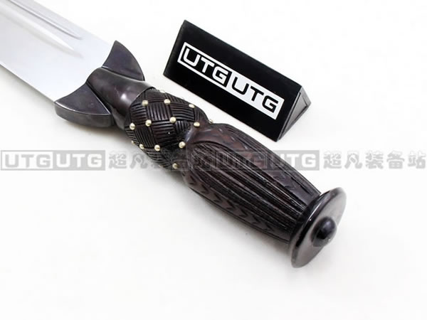 不过对Cold Steel来说,就算是一把古代造型的刃,也必须拥有强大威力。透过现代工业技术,并使用1055中碳钢制作成的苏格兰短剑,绝对不只是花拳绣腿的装饰品,只要实地试验,一定会对它的能力感到惊讶。