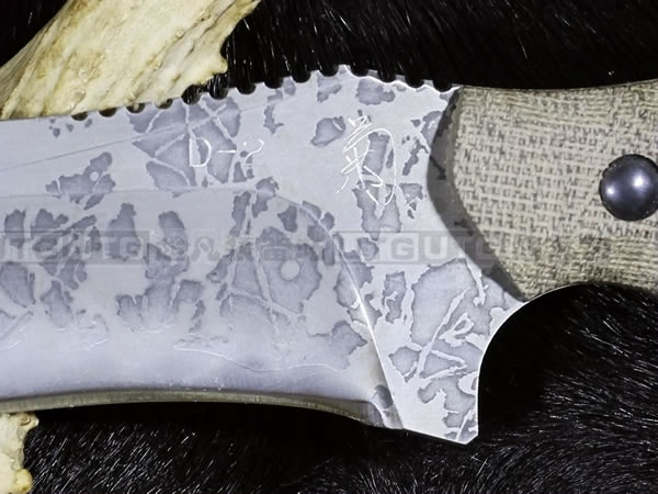 松田菊男先生也已经开始制作属于自己品牌的手工刃具,因其出色的设计和手工技艺,凡是他出品的刃具,都会很快被刃具爱好者收藏。除了刃刃研磨之外其作品的特色以搭配高级的天然握柄材料为卖点,其中以烟竹、染色牛骨、高级木材、牛角、鹿角、G10、碳纤维为主,刃鞘部分则会视刃型设计搭配手工皮鞘或者木鞘、竹鞘等。每一把刃在最后的完工步骤都会刻上松田菊男先生的签名“菊”字,代表这款刃是菊男先生亲手完成的。