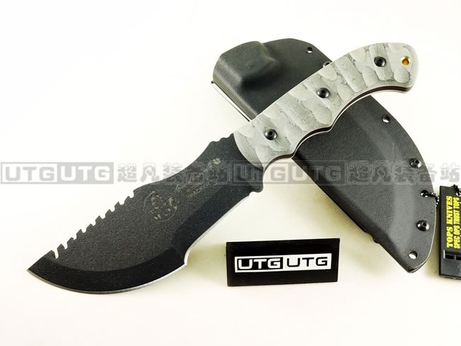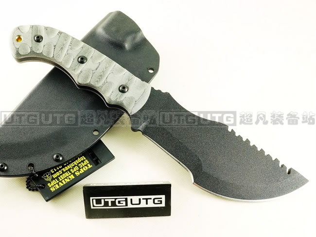 TOPS 010――大名鼎鼎的追踪者,也是尖端战术公司的荣誉产品。它的设计者也是著名的生存专家TOM BROWN “汤姆-布朗”。他根据特种兵的经历和各种野外生存的技巧,经过多次的试验和测试设计了这款刃。追踪者有着强大的功能性,割草伐木,劈石凿洞,挖设陷阱,制作弓箭,狩猎剥皮,当然还是一把自卫的利器。