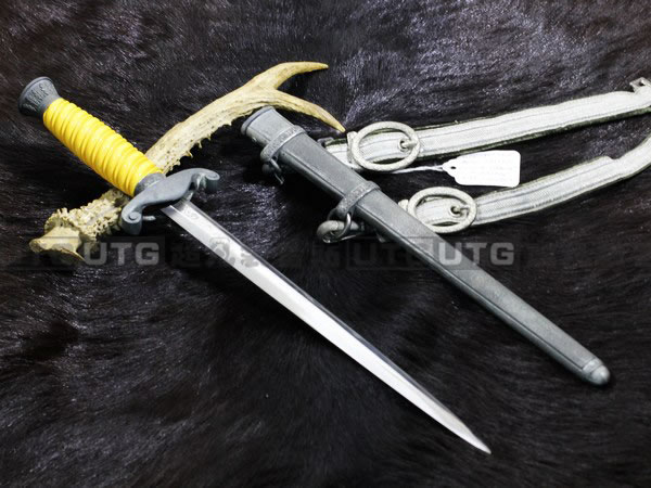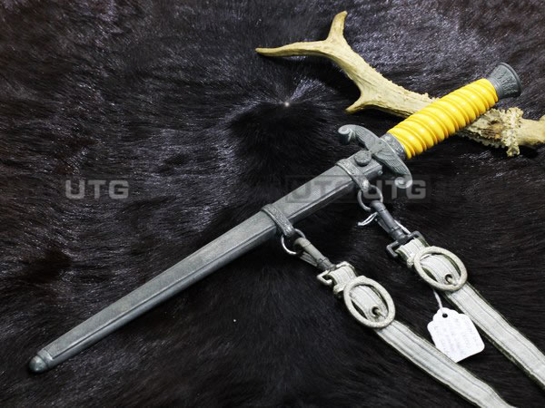 这把二战德军纳粹短剑是陆军军官短剑,校官和元帅佩戴的短剑没有设计上的区别,所有者的名字写在挂带上,由于年代久远,已经看不清楚,但是这把短剑保存完好,品相完美,是一把不可多得的收藏佳品