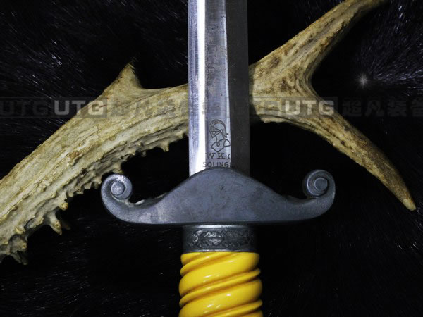 先说说短剑的最主要部分,刃片,刃片是标有制造商的标志。他是由一个头朝下,向左的骑士头盔,和厂商的英文缩写组成,由于第三帝国高超的冶金技术,和wkc公司众所周知的高质量制造工艺,加上当时稀缺的资源,纳粹短剑刃片的质量当时被认为是仅次于传说中的武士刃。