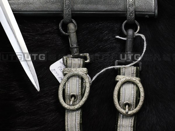 早期生产的短剑采用大汗镀银镍的配件。制造商的不同,采用镀层的质量也是不同,挂带的材质选用了当时最好的portepees胶合材料,用循环编制的方式手工制造。挂带上的卡扣可以调节长度,巴扣是铝制做,用来挂在皮带上,非常简便,Portapees的挂带为这款短剑增加了无限的华丽成分,所以佩戴短剑的时候往往都是游行或者出席正式场合。