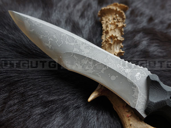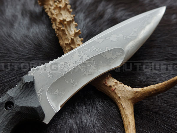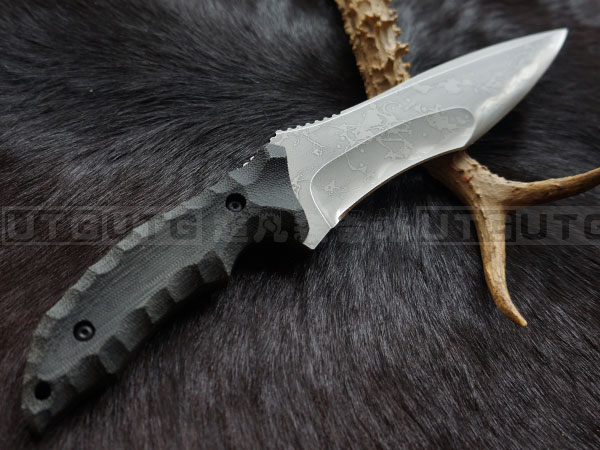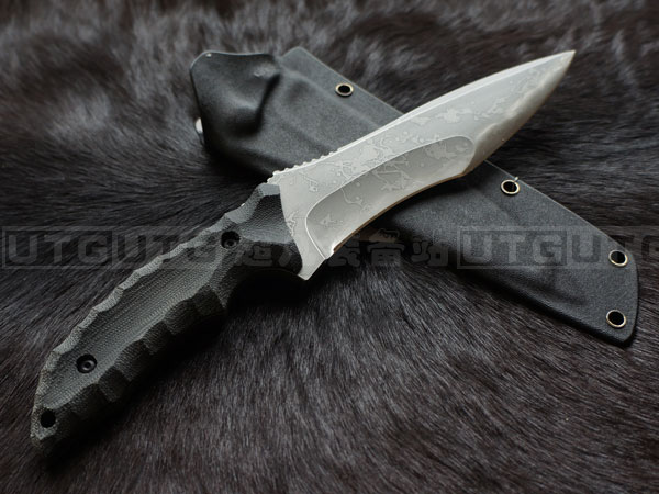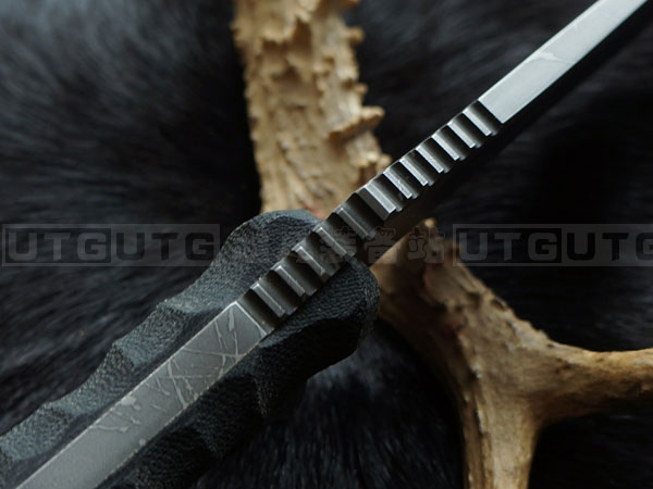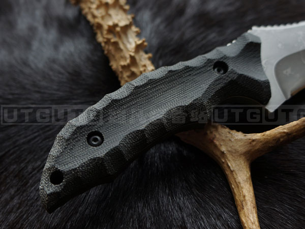 松田菊男KM- 895 HURRICANE飓风战术刃,刃刃采用多段打磨,刃刃前部为凸磨,后部为凹磨,体现了松田菊男先生高超的制作工艺水平。凹磨的刃部锋利异常更便于切割,凸磨的部分刃口有较大的承载力,更便于劈砍,刃尖设计的角度合理,利于穿刺。而背部的假刃设计去除了多余的重量,以便于随身携带。手柄使用米卡塔材质,雕刻了手指凹槽以增加抓握力。总而言之,这是一款非常优秀的战术直刃。