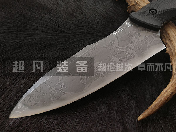 这款松田菊男KM-700 Akigumo 秋云 刃身以惯用的OU-31(Micro Fine Steel)优质级工具钢为刃材,刃身表面采用菊男独特的蚀刻处理,刃根上端刻有“菊”字标识和OU-31钢标号。全龙骨式刃身构造,具备异常稳健的使用性能。全长26.5厘米,刃长14.5厘米,刃厚0.3厘米,重190克,附带战术K鞘方便携带。