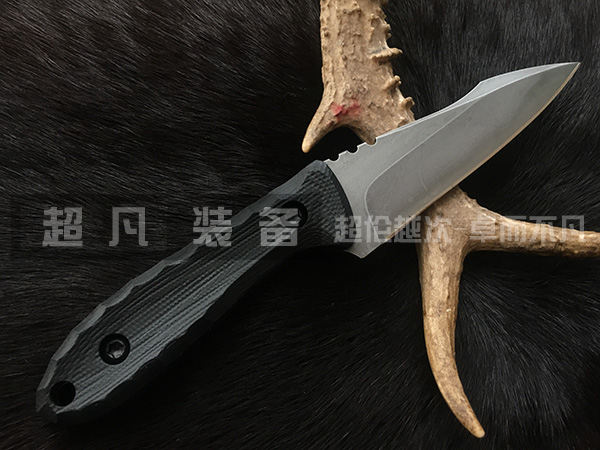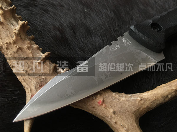 Kiku Matsuda 松田菊男 KM-675 川鸦刃身采用OUS钢材,全长18.2厘米,刃长8.8厘米,是把小巧精干型的多用途工具刀,非常适合于野营,钓鱼,室外烹饪等活动。刀身拥有矛头刀尖,蛤刃刀锋,刀身背侧拥有假刃和拇指凹槽方便用户的精确操作。采用黑色G10材质手柄和防滑花纹,带来很好的握感。尾部的留有系绳孔和战术K鞘则方便用户随身携带。