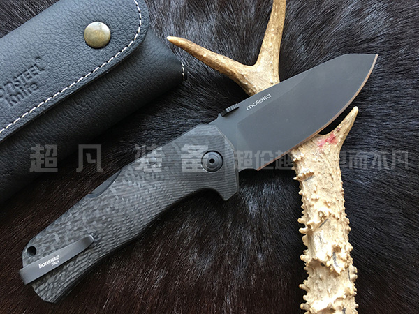 本款TM1 CB折刃使用Sleipner钢锻造,宽阔的刃身再配上精心的平磨手法让刃具拥有出色的切削能力。刃身两侧的滚花辅助开刃无论是左手或是右手使用者都能非常便捷的迅速开刃。刃身表面采用黑色涂层工艺处理。设计师Molletta的名字和钢狮logo分别刻在刃身两侧。这款作品采用专门设计的滚珠轴承垫圈结构进行开合,保证顺滑开关刃具。