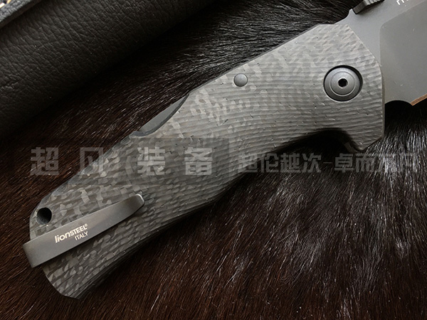 刃具拥有由一整块的碳纤维制作的手柄,这种完整的符合人体工程学的碳纤维手柄使用4轴铣机床制造,刃柄末端拥有一个内置的挂绳孔和碳化钨玻璃击破器,强大的背锁机制让刃具安全性大增,安全感会让使用者在使用时能更好的体味出这把刃具的价值。可换边式不锈钢刃夹方便用户贴身携带,尾部带有系绳孔,让刃具的佩戴更具多样化,让你出行时可以选择合适的携带方式,并有效的保障刃具不会轻易掉落。