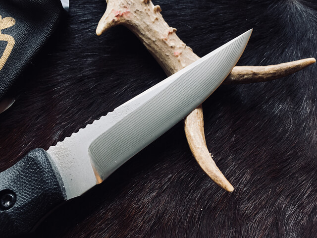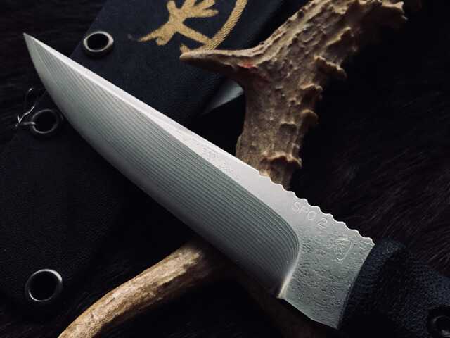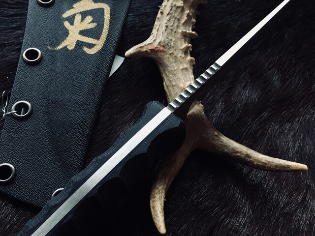 松田菊男先生也已经开始制作属于自己品牌的手工刃具,因其出色的设计和手工技艺,凡是他出品的刃具,都会很快被刃具爱好者收藏。除了刃刃研磨之外其作品的特色以搭配高级的天然握柄材料为卖点,其中以烟竹、染色牛骨、高级木材、牛角、鹿角、G10、碳纤维为主,刃鞘部分则会视刃型设计搭配手工皮鞘或者木鞘、竹鞘等。每一把刃在最后的完工步骤都会刻上松田菊男先生的签名“菊”字,代表这款刃是菊男先生亲手完成的。